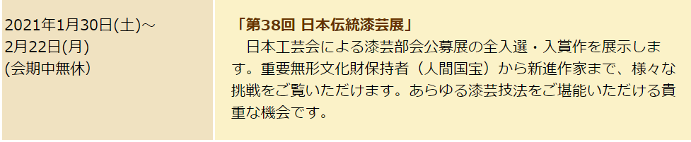 名称:「第38回 日本伝統漆芸展」石川県輪島漆芸美術館