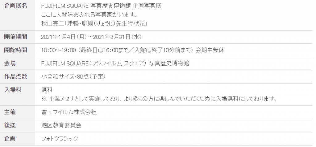 名称:「ここに人間味あふれる写真家がいます。 秋山亮二「津軽・聊爾(りょうじ)先生行状記」」写真歴史博物館