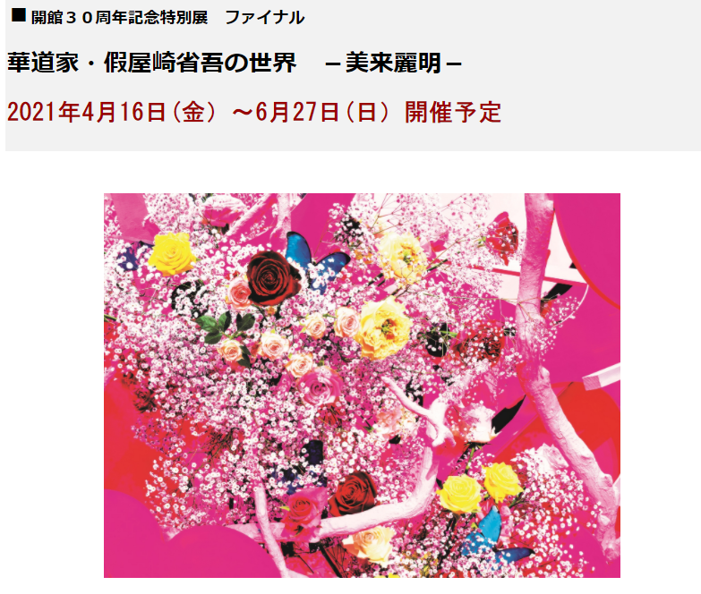 名称:開館30周年特別企画「華道家・假屋崎省吾の世界 -美来麗明-」新見美術館