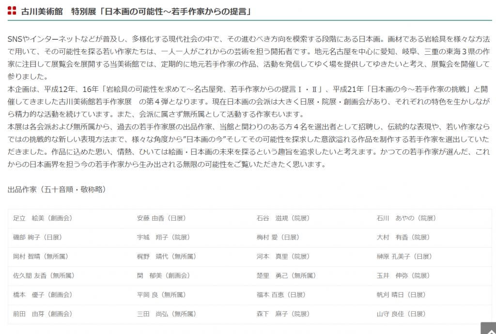 名称:「日本画の可能性~若手作家からの提言」古川美術館 爲三郎記念館