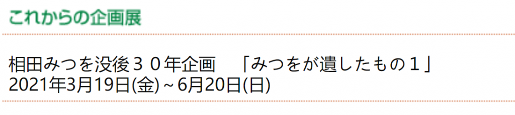名称:「相田みつを没後30年企画 みつをが遺したもの1」相田みつを美術館