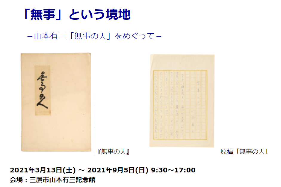 名称:「「無事」という境地 —山本有三「無事の人」をめぐって」三鷹市山本有三記念館