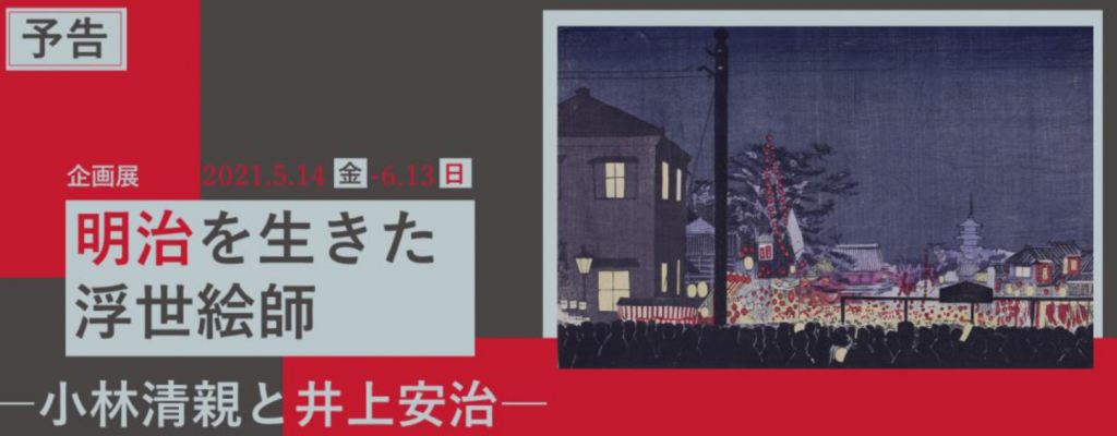 光と影を巧みに表現した浮世絵「光線画」を発表し、明治期に活躍した浮世絵師・小林清親。その画風を受け継いだ弟子・井上安治。幕末・維新期の激動を経て、浮世絵はどのような変化を遂げたのでしょうか。本展では明治を生きた二人の浮世絵師の画業を、時代の面影とともにご紹介します。