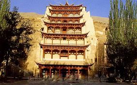 莫高窟は俗に千仏洞と呼ばれ、敦煌から東南25km離れた鳴沙山の東麓の懸崖にあり、南北の長さは1600m。洞窟は366年に切り開き始め、今は彩色絵画のある洞窟が491ヵ所、うち唐代の洞窟は223カ所、歴代の壁画が45万平方メートル、彩色彫塑が2400体、唐・宋(618~1279)時期の木構造の建築が5カ所、蓮花柱石と地面に敷かれた模様付きレンガが数千点、それに蔵経洞が保存されている。建築、絵画、彫塑、敦煌散逸書物からなる総合的芸術殿堂である。莫高窟芸術は、10数の朝代、千年以上を経て、本土漢・晋芸術の伝統を踏襲しながら、南北朝と唐宋芸術の風格を吸収し、さらに域外芸術の風格を絶えずに受け取り、溶合って全方位、多次元の芸術絵巻に形成し、世界では、規模が最も大きく、最も完璧に保存された仏教芸術の宝庫である。それで、『世界文化遺産リスト』にランクされた。敦煌市は、甘粛省河西廊下、祁連山の北麓にある。面積312万km2、人口48万人。境内の西部、北部は殆どゴビ砂漠で、オアシスは東南隅にあり、総面積の45%を占めている。党河は境内にある唯一の川で、硫勒河に属す内陸河で、祁連山の氷河から源を発し、全長390mで、敦煌オアシスの命脈である。典型的な乾燥気候に属する。周りはゴビ砂漠に囲まれるが、土地が平かで気候が温暖で、水源が充足し、豊かな砂漠のオアシス都市で、上質の果物と綿花の出産地である。
