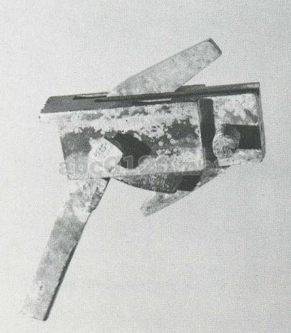 武器。弩は,遠くから射かける一種の武器である。これは,弓と引金の2つの部分から成っている。弩機は,主に弦を引きしばり,照準を定め,発射するのに用いられる。その各部は,一般に本製の腕本と銅製の機牙(弦掛け),望山(照準器),板機(発射用),および木製あるいは銅製の栓塞(とめくざ)とに分かれる。漢代の弩機は,銅製の廓におさめられていることが多いこの弩機にも機廓があり,それは十分精密に作られている。機廓,機牙,板機には,ひとしく篆書で「河内工官三百二十丙」と銘文が陰刻されている。『漢書』「地理志」によれば,河内郡は高祖の二年(前205)に置かれた郡で,その中の懐県には工官があったという。このことは,この弩機が懐県で生産され,河内郡の工官が製作したものであることを物語っている。漢代の懐県は,今日の河南省武陟県にあたる。「河内工官」の弩機が雲南で出土したことは,2000年も前に,内地と辺境とが密接な経済・文化関係にあったことの証拠である。戦国時代に弩は中原地方の各国の戦争で大量に使用されたが,その時代の雲南では弩はまだ発見されていない(ようやく前漢中期になって,墓の中に弩機が発見されるようになる。雲南の弩は,大体前漢時代に相当する。漢の武帝が西南夷に対して兵を用い,益州郡を設置するに従って辺境と内地との経済・文化関係も日ましに密接となり,ようやく伝来してきたのであろう。出所:「雲南博物館青銅器展」