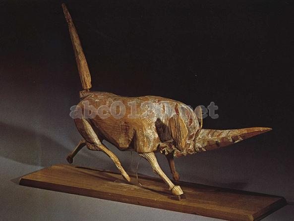 木の丸彫。獣身は白粉がぬられ,そのうえに朱彩がほどこされているが,大部分は剥落している。これは貴族の副葬品で,基を守り邪鬼をふせぐためのものである。彫刻の刀法はさえ,造形は生きいきとした傑出した芸術品である。彫刻師の豊富な想像力と芸術的オ能をあらわしている。出所:「シルクロード文物展」