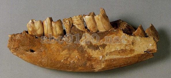 旧石器時代早期 遼寧省大石橋市金牛山A地点洞穴出土 長35.Ocm、高15.Ocm、幅8.0cm。 出所:「中国の考古学展-北京大学サックラー考古芸術博物館所蔵」
