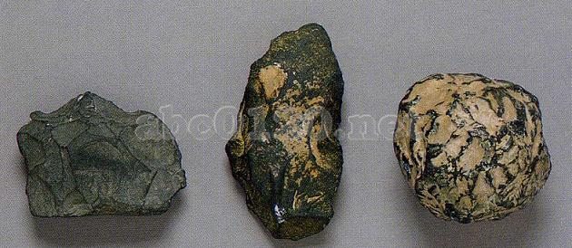 角頁岩の礫の全体を加工して球形にしている。 出所:「中国の考古学展-北京大学サックラー考古芸術博物館所蔵」