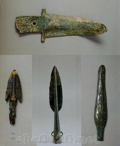 身は柳葉形、刃部はわずかに内湾している。刃部の背には凸起があり、夔文が装飾されている。剣の形態は巴蜀式兵器に近いものであり、この剣は巴蜀式兵器である可能性がある。出所:「中国の考古学展-北京大学サックラー考古芸術博物館所蔵」