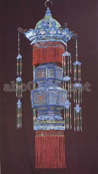 吊り灯籠としては大型で、均整のとれた形にまとめられており、彩絵も美しい。出所:北京「故宮博物院展・紫禁城の宮廷芸術」1985-85