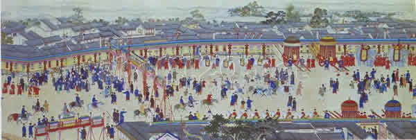 この画巻は、その制作の意図が記録することにあったところから、あるいは芸術性においてそれほど高いとはいえないかもしれないが、清代の北京における社会、文化、経済活動や市民の生活風俗をものがたるひとつの資料としても珍貴とするにたる作品である。出所:北京「故宮博物院展・紫禁城の宮廷芸術」1985-85