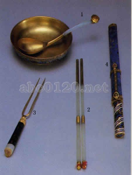 宴会はふつう午前十一時に宴席の用意がととのえられ、午後一時に始められた。午後三時ころには終了することが多かったが、宴のあいだも進茶、進饌、進爵、行酒、献舞などをはじめとする煩雑な儀式が多く、宴の終ったあとも皇帝への謝恩の礼があった。出所:北京「故宮博物院展・紫禁城の宮廷芸術」1985-85