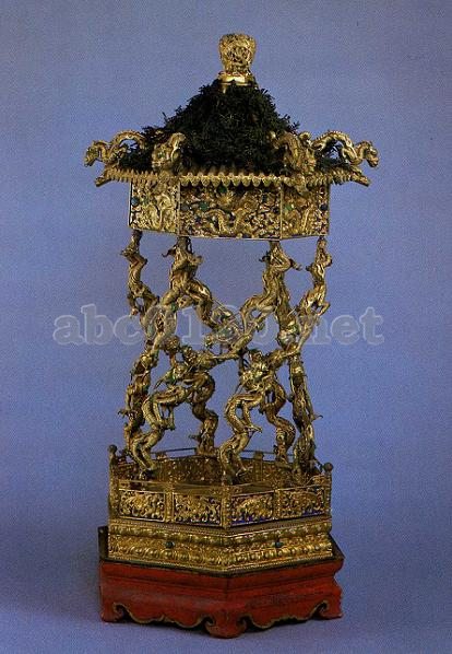宴会はふつう午前十一時に宴席の用意がととのえられ、午後一時に始められた。午後三時ころには終了することが多かったが、宴のあいだも進茶、進饌、進爵、行酒、献舞などをはじめとする煩雑な儀式が多く、宴の終ったあとも皇帝への謝恩の礼があった。出所:北京「故宮博物院展・紫禁城の宮廷芸術」1985-85