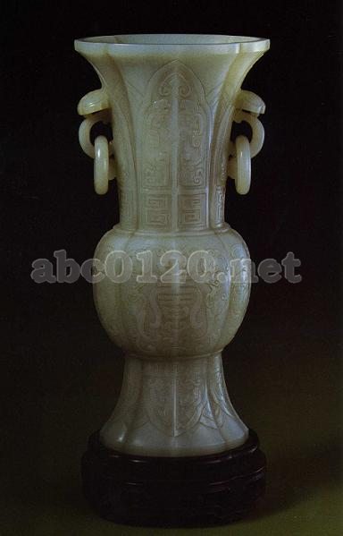 頸の両側には刳りぬきで如意形の飾りと遊環をつけている。合座は底の形に合致させた紫檀製で、底面に「乾隆御玩」の銘が陰刻されている。出所:北京「故宮博物院展・紫禁城の宮廷芸術」1985-85