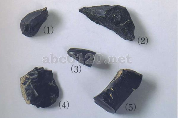 数量はわりあいと多く、その中の楔形石核の顕著な特徴は底部の多くが刃縁状を呈していることである。細石刃はたいへん典型的なものである。細石器は弧刃刮削器、条形尖刮器、直刃長刮削器、さらに石核式刮削器を主としている。少量ながら尖頭器もあり、このほかには刃部を持つ小さなナイフ型石器も多い。出所:『中国四川省古代文物展』-三国志のふるさと、遥かなる大地の遺宝2000