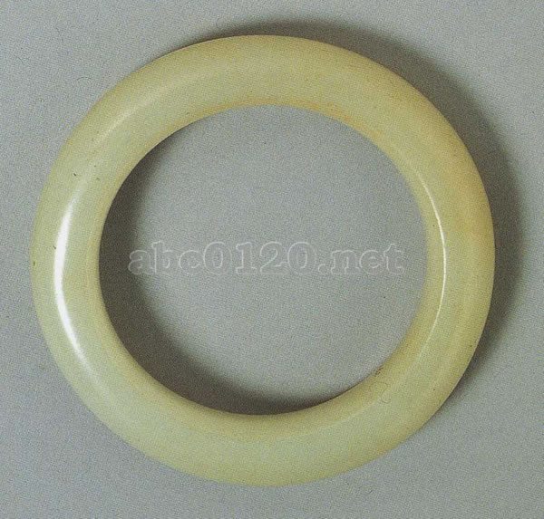 小さな璧と環。璧は白玉の薄い板状を呈し、表面は素文となっている。環は断面円形で、全体にていねいに仕上げられた作である。この二つの白玉器も戦国~前漢時代の作とみるべき遺物である。静志寺塔基からは玉璧が6点、玉器が100点余り出上していると報告されており、かなりの数の玉器が埋納されていたようである。玉器のすべてが戦国~漢代のものであるかどうかは明らかではないが、定州市周辺の戦国~漢代の墳墓から掘りだされたものが埋納されたと考えられる。出所:『地下宮殿の遺宝中国河北省定州北宋塔基出土文物展』
