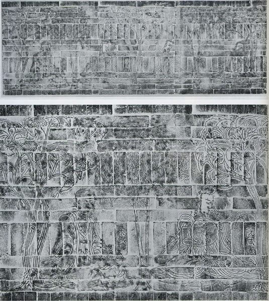 晋・南北朝|彫刻・書画>「竹林七賢と栄啓期」型押し磚画拓本(2)