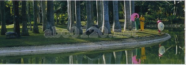 シーサンパンンナは中国雲南省の南西部に位置し、全国唯一の熱帯雨林自然保護区で、樹木が高くそびえ、延々と数十キロも続いている。熱帯雨林は木々が生い茂り、天地を覆うようで、植生の層と群生がとても豊富で、シーサンパンナの原生林に足を踏み入れると、上からはな日差しが射し込んでいるのに、樹林の中は闇の中のように暗い。熱帯雨林の上の層は雲を刺すようにそびえる古木で、下の層は落葉が積み重なり、草や花を目にすることができ、中間の層は高い木や藤の根が曲がリ<ねり、入り組むように巻き付いている。シーサンパンナの原生林には豊富な生物資源があり、一本の木だけで樹林になる高山ガジュマルもあれば、高層ビルのようにそびえる望天木(高さは70メー卜ル)もあり、またウパスの剣毒木もあれば、はがねのように硬いタガヤサンもある。そのほか、ゾウ、野生の牛、オオトカゲ、テナガザルなどの稀少動物も熱帯雨林に生息している。出所:『ようこそ北京五輪(オリンピック)2008』