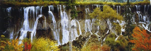 九寨溝は原生的生態系環境、すがすがしい空気と雪に覆われた山、森林、湖によって構成された自然の景観で世に知られ、内外の観光客に「童話の世界」、「この世の仙人の世界」とたたえられている。三つの谷間が「Y」の字の形をなしており、九寨溝の自然の名所は全部谷間の両側に集中している。高い峰、色とりどりの樹林、緑の森の海、滝とチベット族の風情は「五つの絶品」と称されている。水は更に九寨溝の精霊ともいわれ、湖、泉、滝、砂州がつながつており、動の中に静が見え、硬の中に柔がうかがえる。谷間には108の形と広さがそれぞれ異なる湖沼が分布し、水深は数十メートル以上であるのに、底まで見える。水中の植物の種類が湖底の沈殿物と違うため、水の色がそれぞれ異なり、さざ波にも多彩を添え、朝日や夕日の下では、水中の逆さ影がさらにはっきりと見え、足を進めると水中の景観が変わり、無限の趣きがある。出所:『ようこそ北京五輪(オリンピック)2008』