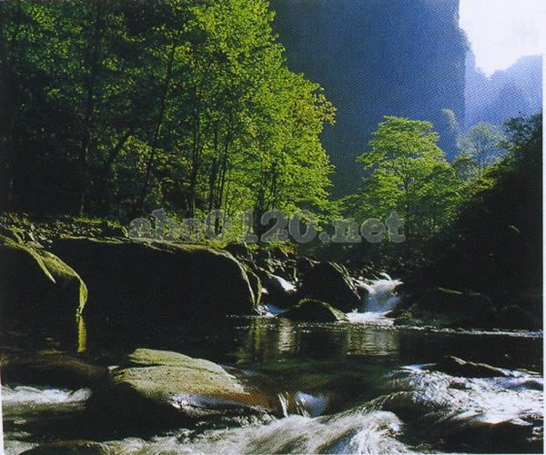 張家界は奇岩がたくさんあることで知られている。約3000の山峰が高くそびえ、形がまちまちで、あるものは玉の柱、神のムチのように地面から空を刺すような形で、あるものは堅固なとりでのように高くそびえ立っており、あるものは盆栽や骨董品のように、奇異な美しさを誇示して、人々を感嘆させる。主な見所は黄獅寨、金鞭渓、琵琶渓、袁家界。出所:『ようこそ北京五輪(オリンピック)2008』