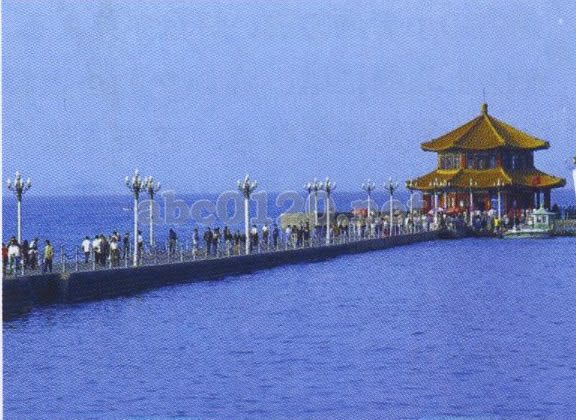桟橋は青島のシンボルである。観光客は桟橋の海辺をそぞろ歩きすれば、青島の三日月型都市の輪郭を眺望することができ、桟橋は長いにじのように波間に伸び、回瀾閣が光り輝いている遠方の小青島の白い灯台が見える。東側と北側には、赤いかわらと緑の樹木が人目をひき、さまざまな建物が岬の傾斜地の上に建ち並んでいる。欧米風のモダンなビルが海岸沿いに建ちならんでおり、壮大なスケールで美しい。沿岸の防波堤は花南岩で築かれたもので、水面より10余メートル高い。満潮時には、波が岸壁や堤防に激しくぶつかり、真っ白な波しぶきを上げ、無数の観光客を引きつけており、引潮の時には、赤褐色の岩礁と金色の砂州が水面に現われ、砂浜は貝を拾う観光客で埋まる。風がなぎ、波も静かな時に、数多くのカモメが自由自在に旋回し、美しい青島湾に活気をみなぎらせている。出所:『ようこそ北京五輪(オリンピック)2008』
