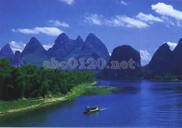 桂林から陽朔に至る長さ84キロの灕江は薄い玉の帯のようで、山々の間を曲がりくねるようにして流れている。奇異な形の山峰が岸の両側に立ち並び、澄みきった水が曲がり<ねるように流れ、景色が非常に美しい。入り乱れて分布している川沿いの農村も民間の人文風俗を堪能するすばらしいスポットである。