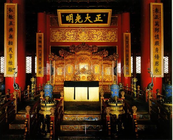 故宮内廷の乾清門内にあり、明の永楽十八年に建てられた。高さ20mで、二重寄棟造りの屋根で、幅9間の建物だ。殿内には「正大光明」の額が懸けられている。外の両側には、政権を象徴する金めっきの江山金殿と社稷金殿がある。明代に、皇帝と皇后の寝宮で、清代以降、皇帝の寝宮と執務室だった。出所:中国世界遺産「故宮」