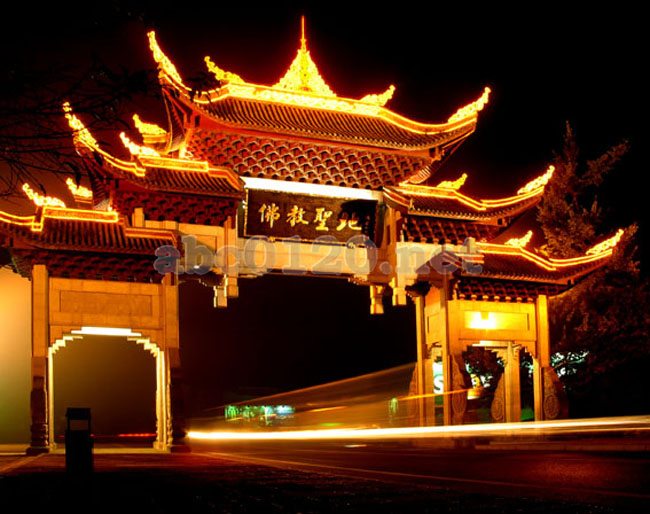 普賢菩薩の道場である。1世紀頃、仏教は峨眉山に伝来したと伝われている。2000年に近い仏教の発展史によつて、峨眉山に豊かな文化遺産をもたらした。実践を重んじて仏教を高揚する普賢菩薩は、密宗では高い地位を占めており、吉祥と力のシンボルと信じられている。普賢菩薩を参拝し、安全護衛などの願い事が叶えてくれる。万年寺にある銅製の「象に乗る普賢菩薩」像は、峨眉山の宝物。阿弥陀仏銅像、三身仏銅像、報告寺にある脱紗七仏などは、珍しい仏教塑像である。それに、タラヨウに書かれた経典、華厳銅塔、聖積晩鐘、金頂銅牌、普賢金印鑑などは貴重な仏教文化財として重宝されている。出所:中国世界遺産「峨眉山と楽山大仏」