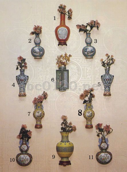 緑地粉彩勾蓮開光山水詩句壁瓶(対) 2008年06月19日(木)更新