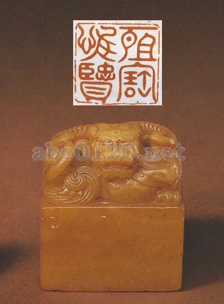 内務府造辦処がつくつたもので、精緻な彫刻、紐の獣頭がきわめて精巧に刻されている。印文は陽文の篆書体。「所寶惟賢」は才能のある人こそ国の最も貴重な宝だという意味である。出所:『北京博物院・清朝宮廷文化展』
