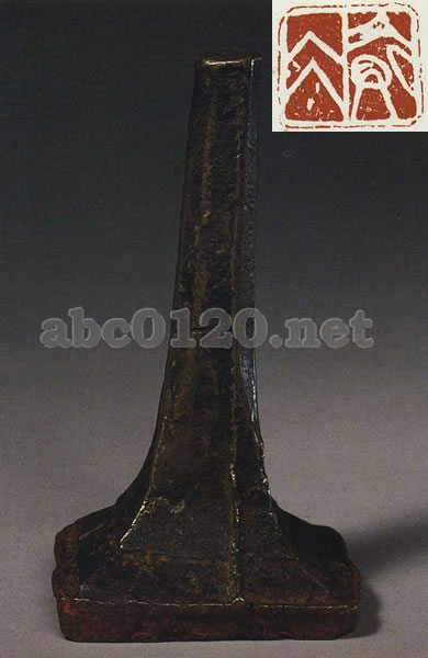 戦国時代の楚の官印。現在残っている戦国時代の印としてこのような形のものは少ない。陰文の「大(府+貝)」の二字は雄奇剛健にして粗獷豪放である。