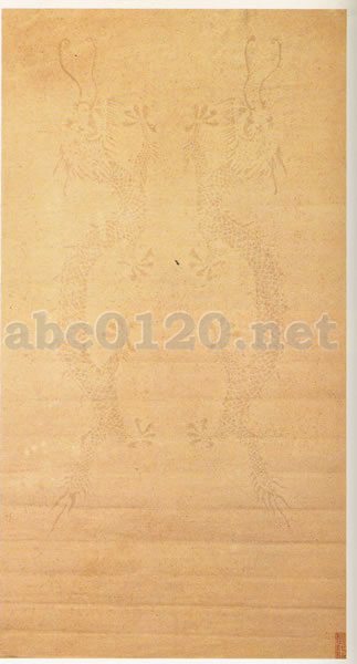 三枚の紙を合わせてつくったもので、まず一枚の紙に龍の図案を刻みつけ、さらにそれを宣紙二枚ではさんだ。光をあてて見ると、中にはさんだ龍の模様が浮上って見えてくる。右下隅には「御製淳化軒刻画宣」という陽文長方形印が押してある。この紙は記録には見当たらないので、内府で製作されただけで、民間には出なかったものと思われる。質は均一で、書くのに適している。
