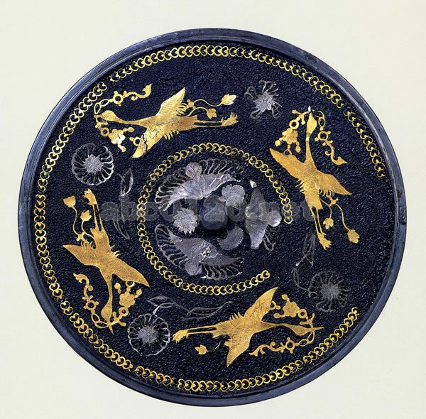 隋・唐・五代|青銅器>金銀平脱四鸞銜綬文鏡