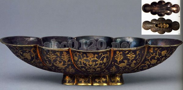 隋・唐・五代|金銀・玉器>花鳥文八曲長杯