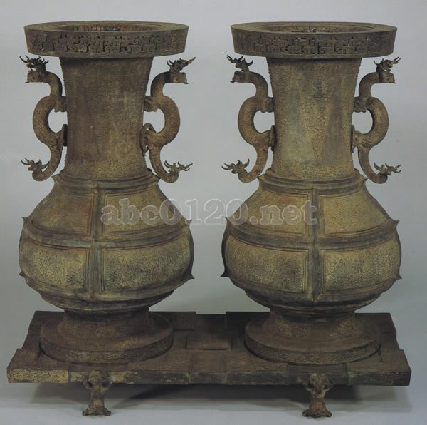 壺の器体は3回に分けて鋳造されている。それぞれ3個ないし4個の外笵と内笵を組合せた鋳型を用いて鋳継ぎしたものである。龍形の把子は別個に鋳造して鑞付けしている。蓋、器体には人面の組み込まれた細かい羽状紋が施されるが、同じ紋様は大尊缶の蓋や方鑑缶にも見える。頚部の蕉葉紋に見える蟠螭紋は、金製盞の器体の紋様と同種のものである。