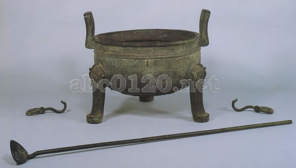 出土した時、鼎の口縁には竹を編んだ蓋が載せられており、中には牛の右の肩、右前足、右後ろ足など、ちょうど牛半頭分の骨が入っていた。また底部には煤の痕跡があった。この鼎は祭祀のとき犠牲の肉を煮るためのもので、古代の文献に記されている鑊鼎に当るものと思われる。