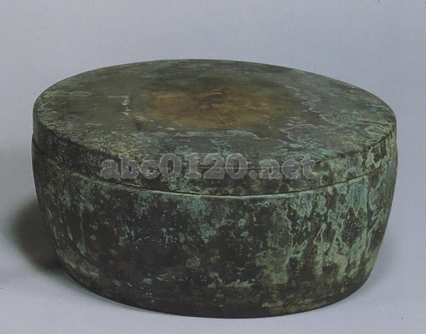 蓋付きの容器である。器壁は薄く、1.5~2.5mm、内外面とも無紋である。『報告書』は鋳造品としているが、鋳型の継ぎ目やスペーサーの痕跡は認められない。青銅板から鍛造で作った可能性も考えられる。