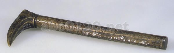 中室で匜の中から発見されている。頭部は鳥頭形を呈し、両眼も突起によって表されている。柄の部分には沈線で鳥首龍紋などが表され、「曽侯乙作持用終」の銘文がある。