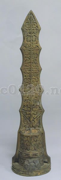 刃の裏には紋様はなく、 横から見ると幾分反っている。明らかにこの種の車軸頭は、戦車の敵陣を突き崩す力を強化するためのものである。戦車に刀刃を装着するのは、中国では極めて稀にしか見られず、最も早いものは陝西省戸県宋村の春秋時代の墓で発見されている。文献では刀を装着したこの種の戦車を「銷車」と呼び、或いは「衝車」と呼んだ。出所:『曾侯乙墓』
