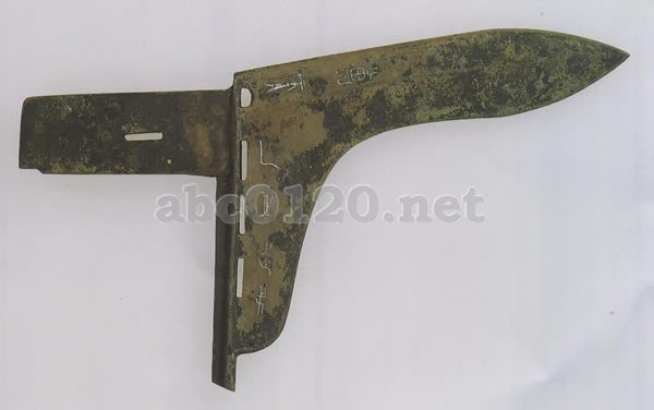 「曽侯乙之走戈」の銘文がある。曽侯乙墓では66点の戈が発見されているが、この型式の戈は31点あり、その半数近くを占めている。そのうち29点に「曽侯乙之走戈」の銘文があるが、それらの戈は大きさと形がほぼ同一で、同じ鋳型で作った可能性もある。柄の長さは1.27~1.29メートルであった。出所:『曾侯乙墓』