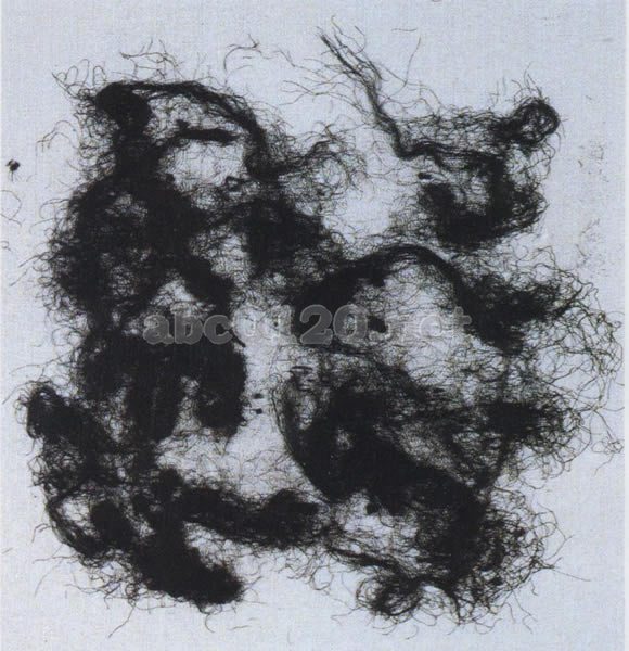織物断片 曽侯乙墓には大量の織物が副葬されていたが、長い年月が経過したため、ほとんどが朽ちて、本来の状態を保っているものは少ない。 絹糸の束。出所:『曾侯乙墓』 特別展 日中国交正常化20周年記念