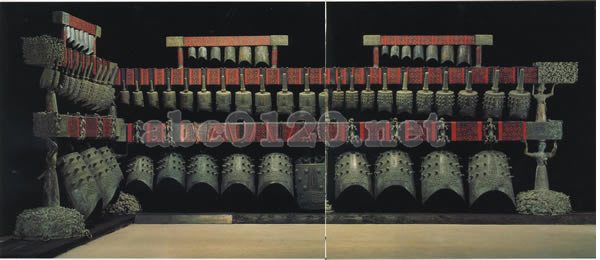 65個の大小の青銅製の鐘を、青銅と木で作られた3段の枠に並べた楽器である。