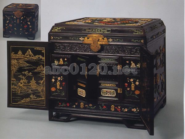 明・清|彫刻・書画>黒漆嵌装化粧道具箱