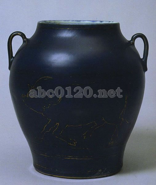 瑠璃釉金彩牛文双耳壺 2008年08月03日(日)更新