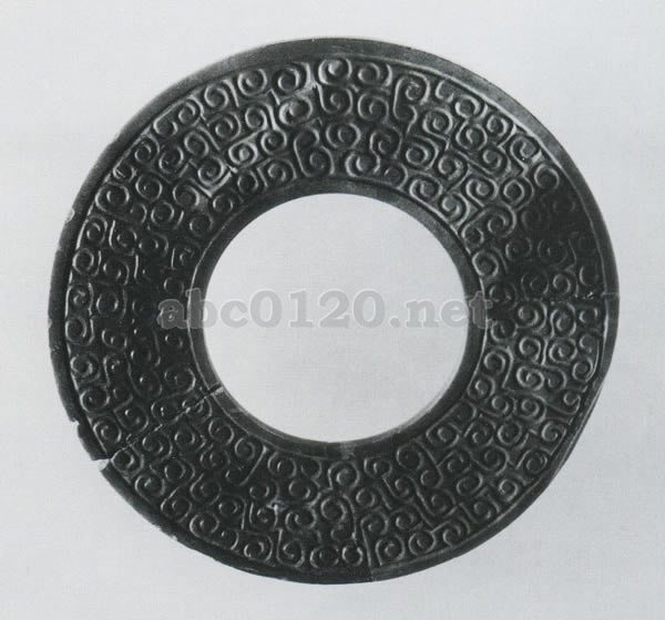 玉 径10.4 重78g 1977年中山王(興+昔)墓出土 青玉。内側を雲文で飾る。貴族の装身具。出所:「中山王国文物展」-中国戦国時代の雄