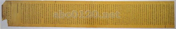 起首を欠き、末尾に「佛説大薬善巧方便経巻上」と記す。紙は檗染硬黄紙で、界欄は鳥絲欄(墨罫)である。『開元釈教録』別録之七「刪繁録」には、この経が『根本説一切有部毘奈耶雑事』を出典にしているとあり、『説一切有部律中縁起』によれば、唐代の有名な三蔵法師義浄が抄出したものが単独に流布したとある。『貞元新定釈教目録』もこの説と同じである。この写本の内容は『根本説一切有部毘奈耶雑事』第二十七巻にみられ、両者には一字の相違もない。この経の巻下はまだ発見されていない。この経は義浄が七一〇年に訳している。紙・字体・墨色・界欄からみて、宮廷写経に属すると思われる。おそらくは義浄の訳経後、朝廷が頒布した範本であろう。この尾部の題記四行は後世の補筆とみられる。内容は多く矛盾し、今日でも不明な点が多い。出所:『砂漠の美術館-永遠なる敦煌』中国敦煌研究院設立50周年記念