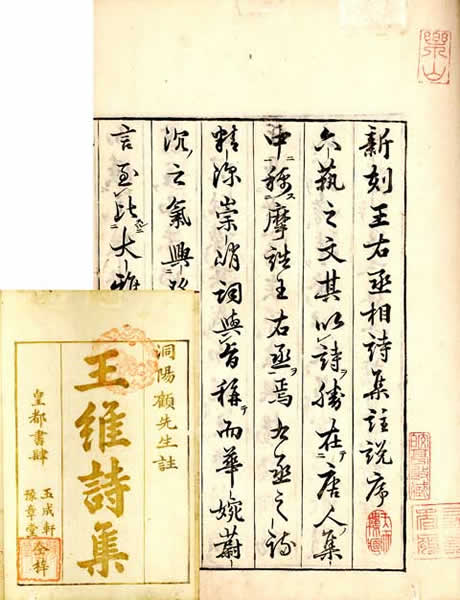 盛唐の詩人、、画家。蒲州(山西省永済県)の人。字は摩詰。尚書右丞となったので王右丞ともよばれる。開元の進士。安禄山の乱で捕えられその配下に入ったため、乱後唐王朝の問責をうけたが、乱中に作った詩が評価されて死刑を免れる。熱心な仏教徒で、晩年、藍田(陝西省藍田)の別荘で半隠居生活を送った。五言絶句にすぐれ、自然を詠じた山水田園詩が有名。また、山水画を得意とし、後世に文人画(南宗画)の祖とされる。詩文集『王右丞集』がある。出所:中国