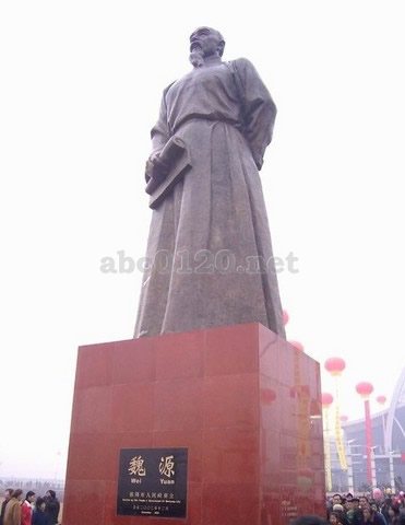 清 (1794-1857) 清後期の思想家。邵陽(湖南省)の人。字は黙深。各州知事を歴任。アヘン戦争、太平天国鎮圧を経験する。今文学派を継承し、経世致用を主張。軍事史書『聖武記』、そして林則徐編の西洋歴史地理資料『四州志』などをもとに『海国図志』を著述、西洋の進出に対抗するために人心を一新、人材を育成、さらに西洋の長所も学ぶよう力説した。出所:中国