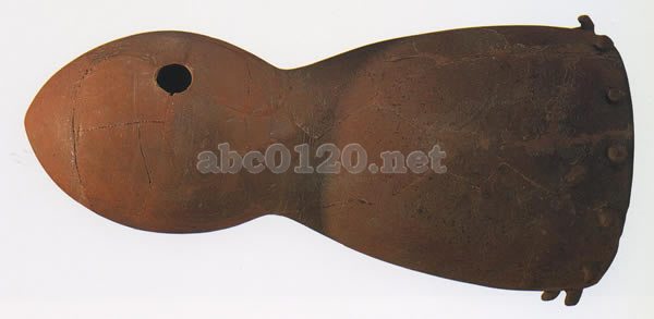 夾砂紅陶質.口縁部に突帯が一周している.腰がくびれ,小さな腹が少しふくらみ,尖底.腹の中部に孔が一つあけてある。出所:「黄河文明展」