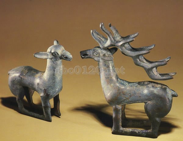 表情,姿態ともに角のある鹿と似ている。輪郭と線はやや柔かく,凹凸はきわだっていない。出所:中国内蒙古北方騎馬民族文物展